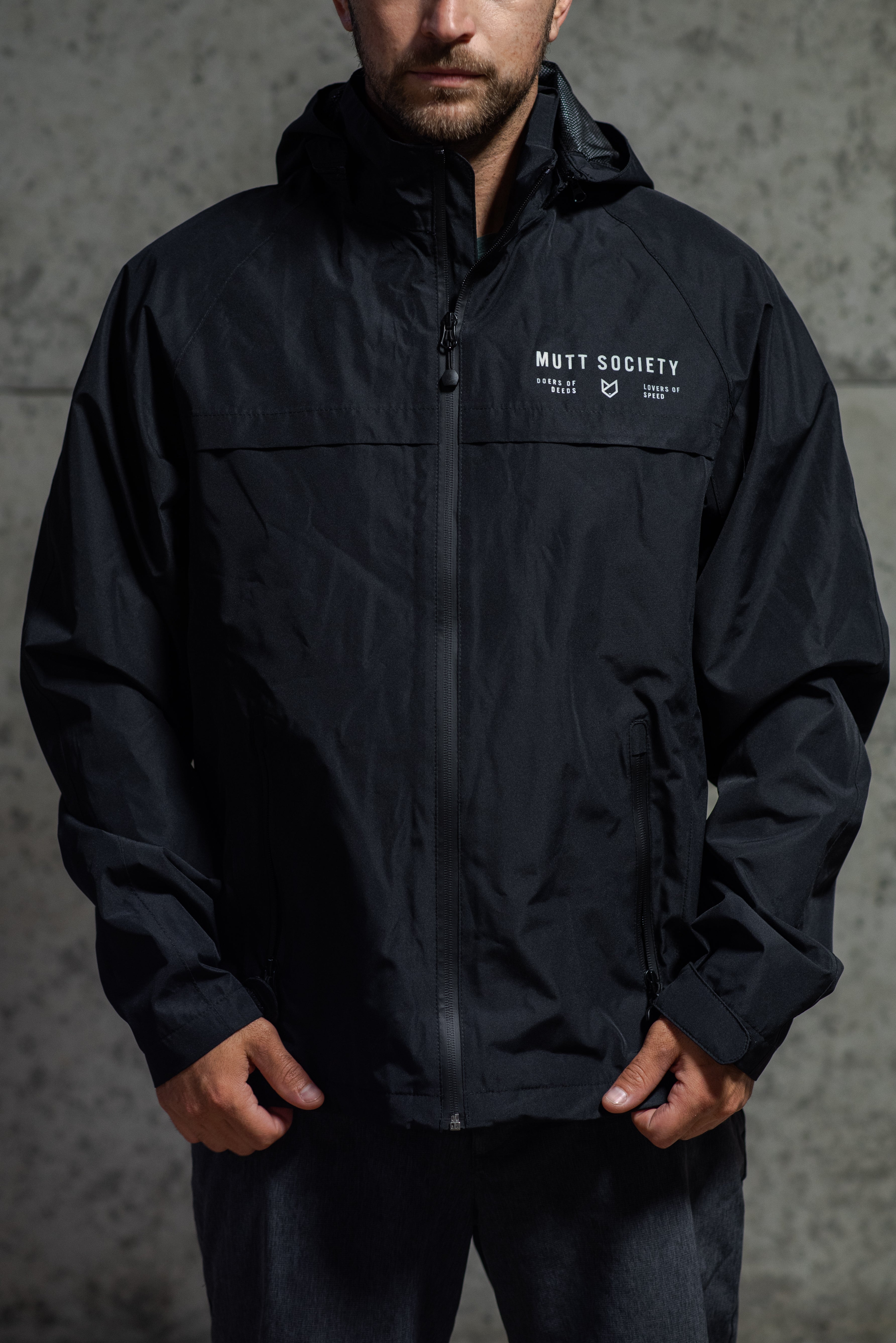Stay dry and stylish in the Mutt Society Rain Jacket! With its removable hood and long back for extra coverage, this jacket is perfect for any rainy race day. Don't let the weather dampen your spirits, embrace it with the Mutt Society Rain Jacket!